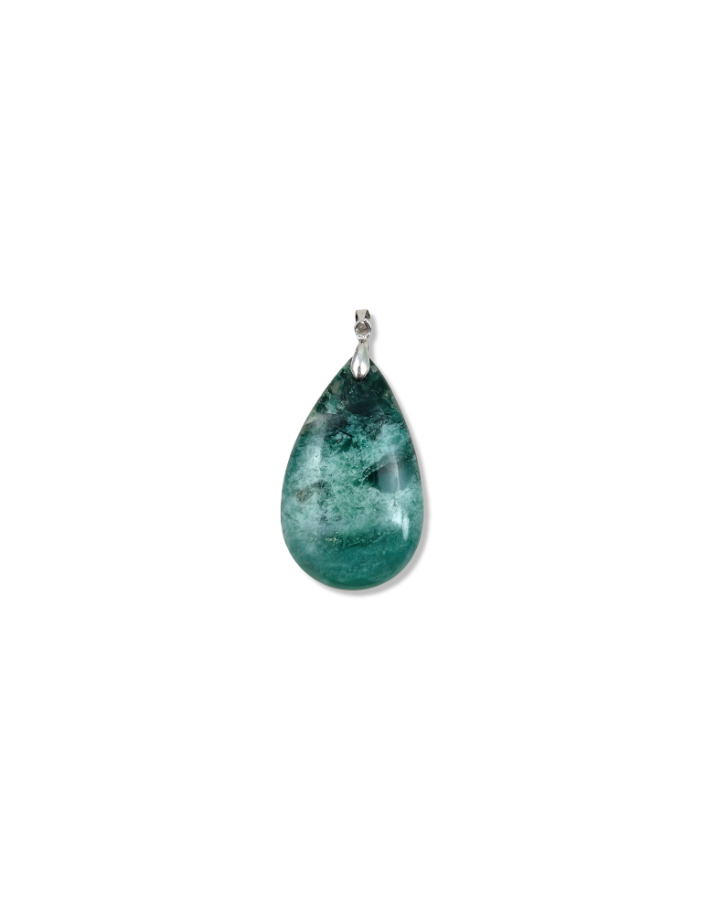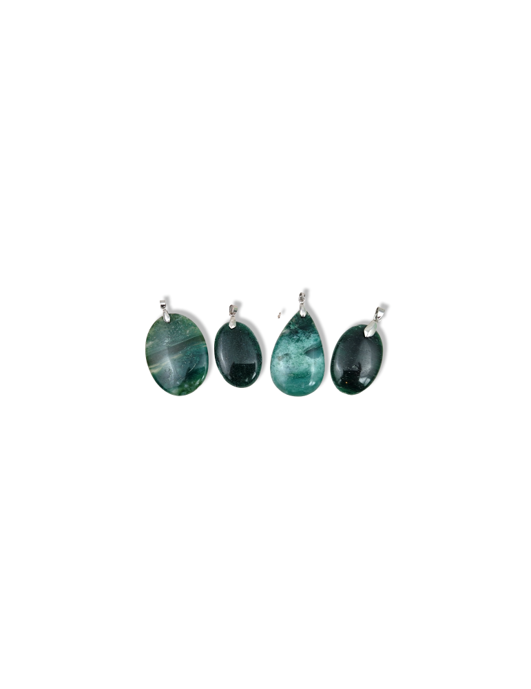 Wunderschöner Anhänger mit grünem Chalzedon-Cabochon, montiert auf einer Metallöse. Sublime Farbvariationen im Licht.