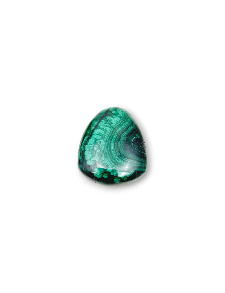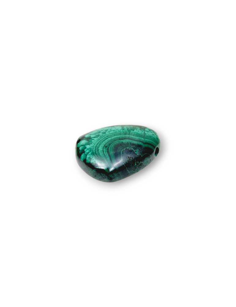 Anhänger im gerollten Stein-Stil aus Malachit, ohne Öse. Durchbohrt für die Durchführung einer Schnur.