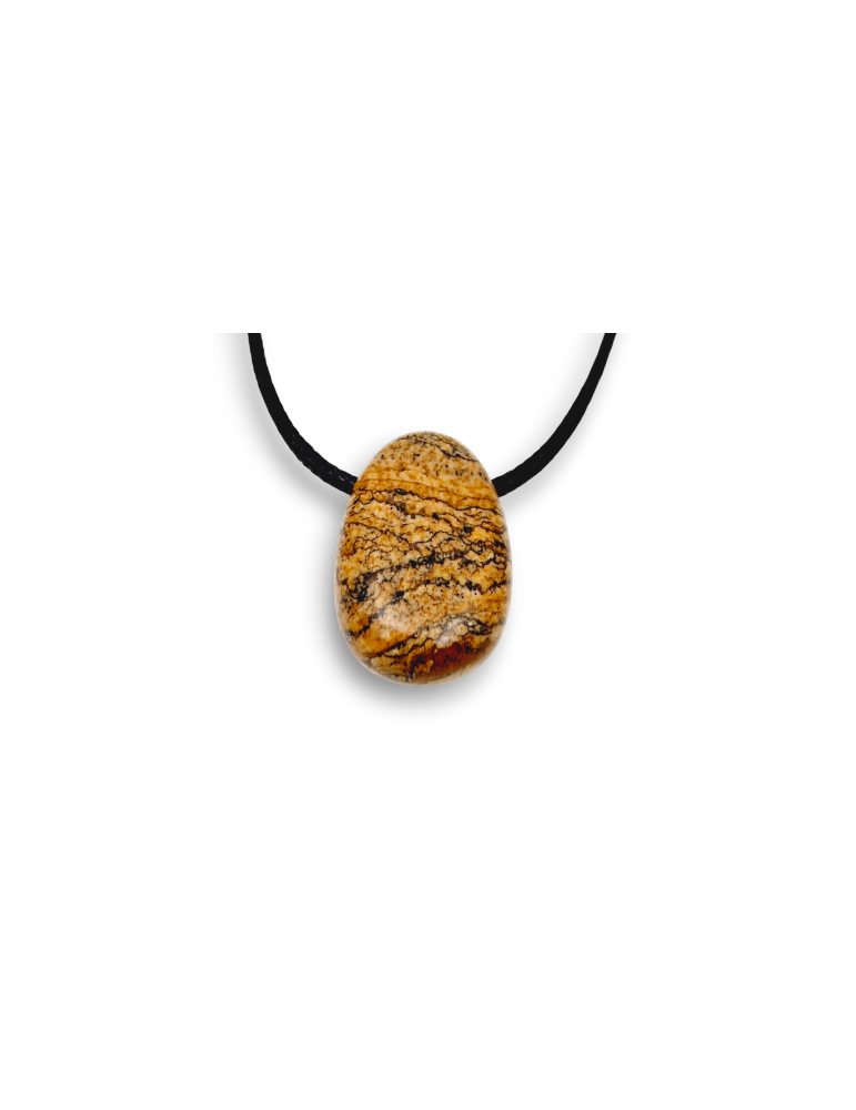 Anhänger aus Landschaftsjaspis, durchbohrt für das Durchziehen einer Schnur.