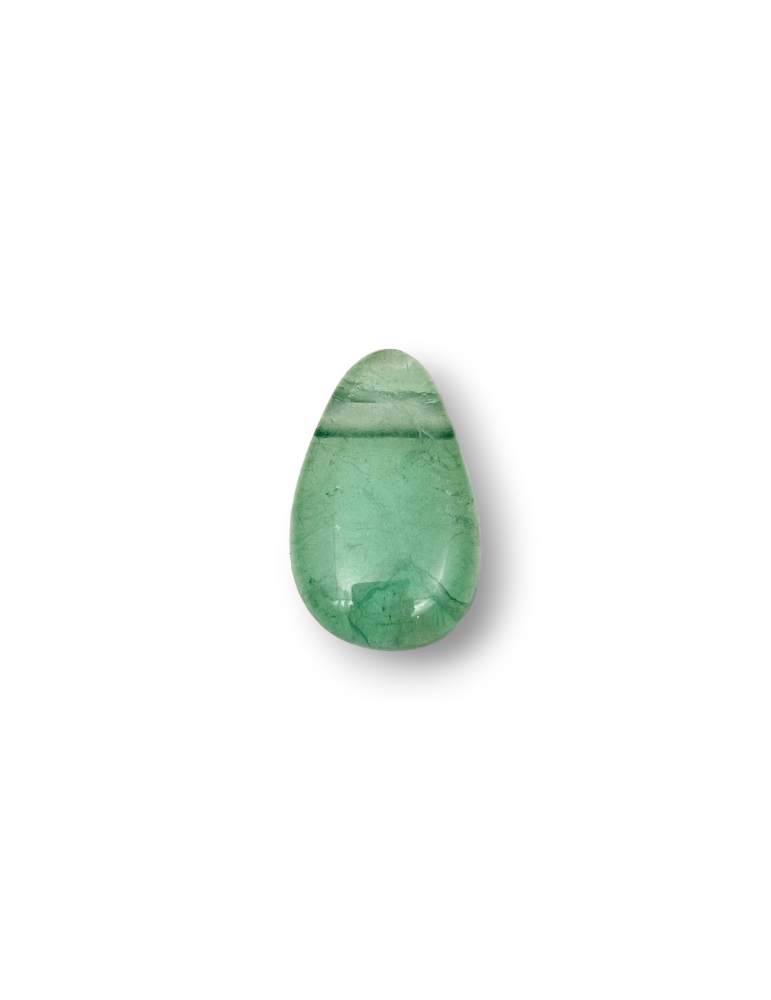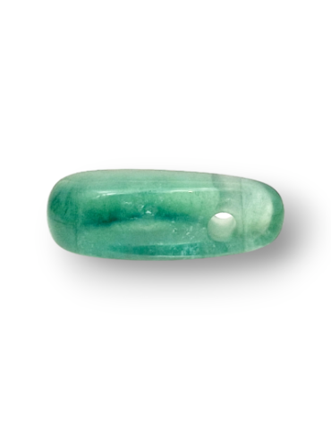 Anhänger aus grünem Fluorit, seitlich gebohrt für die Durchführung eines Kabels.
