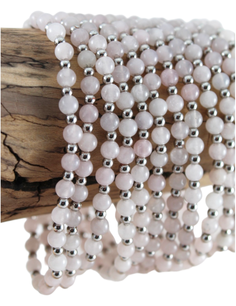 Rosenquarz - Perlenarmband mit Edelstahlzubehör