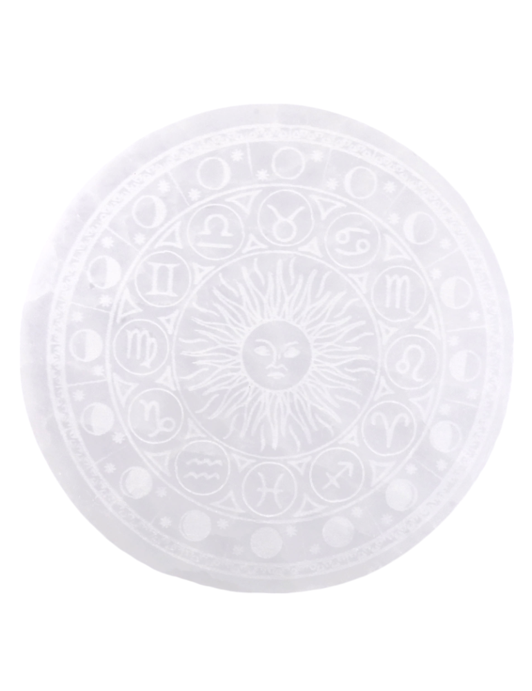 Selenit - Gravierte Zodiac Scheibe zum Aufstellen.