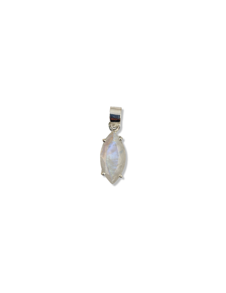 Gefasster Anhänger aus weißem Labradorit. Marquise Größe.