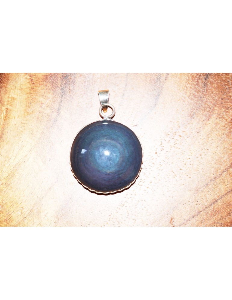 Colgante de obsidiana manta huichol de una cara engastado en plata 925