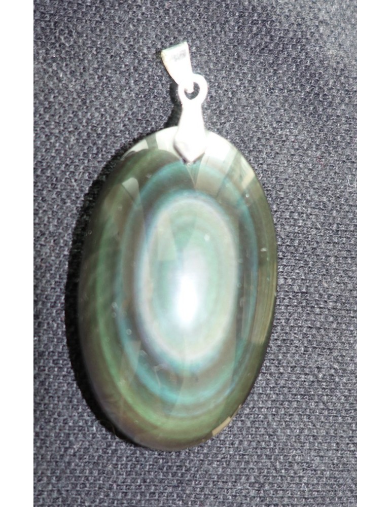 Colgante de obsidiana ojo celestial cabujón engastado en plata 925 torcida