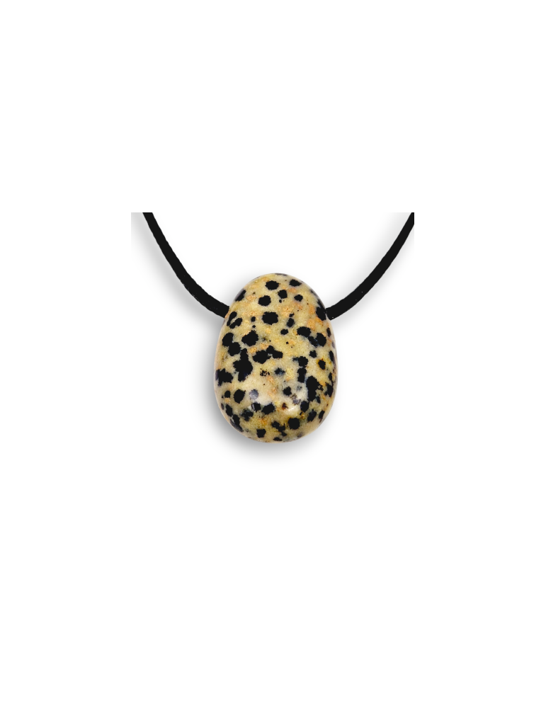 Colgantes de Jaspe dálmata perforados a través para el paso de un cordón.