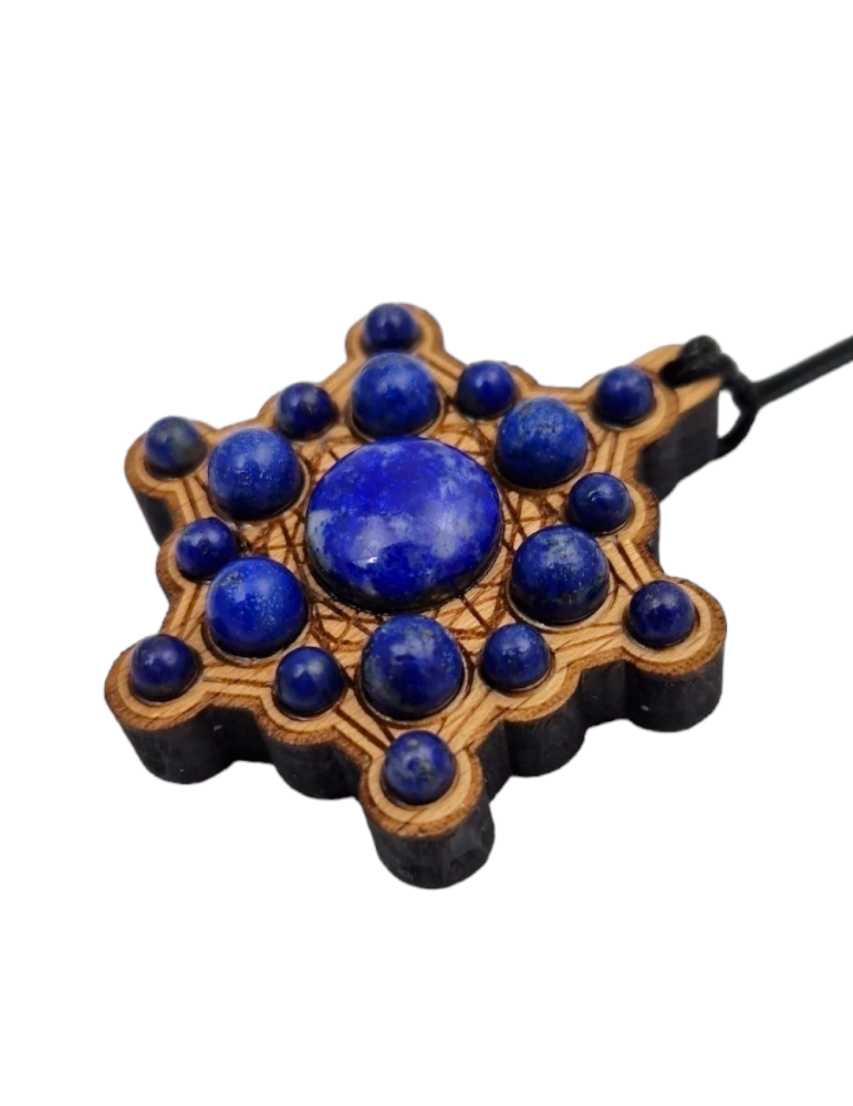 Colgante de madera metatrón en Lapislázuli, con un cordón ajustable de 90 cm