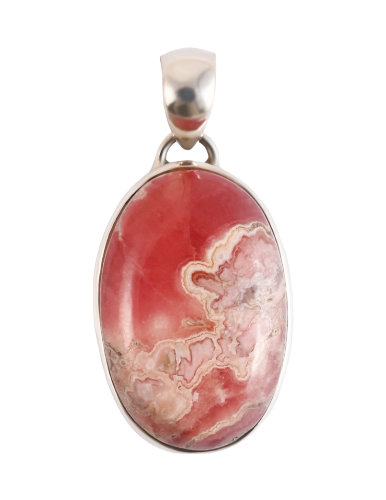 Colgante en rodocrosita engastado en plata 925, asa de plata - Calidad A