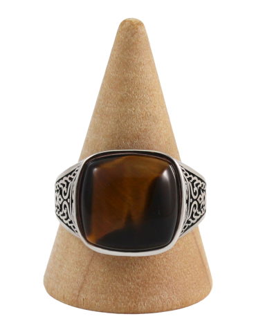 Bague chevalière en obsidienne noire - Qualité A