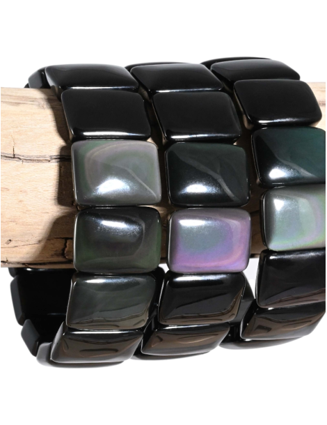 Obsidienne œil céleste - Bracelet de perles plates, rectangles