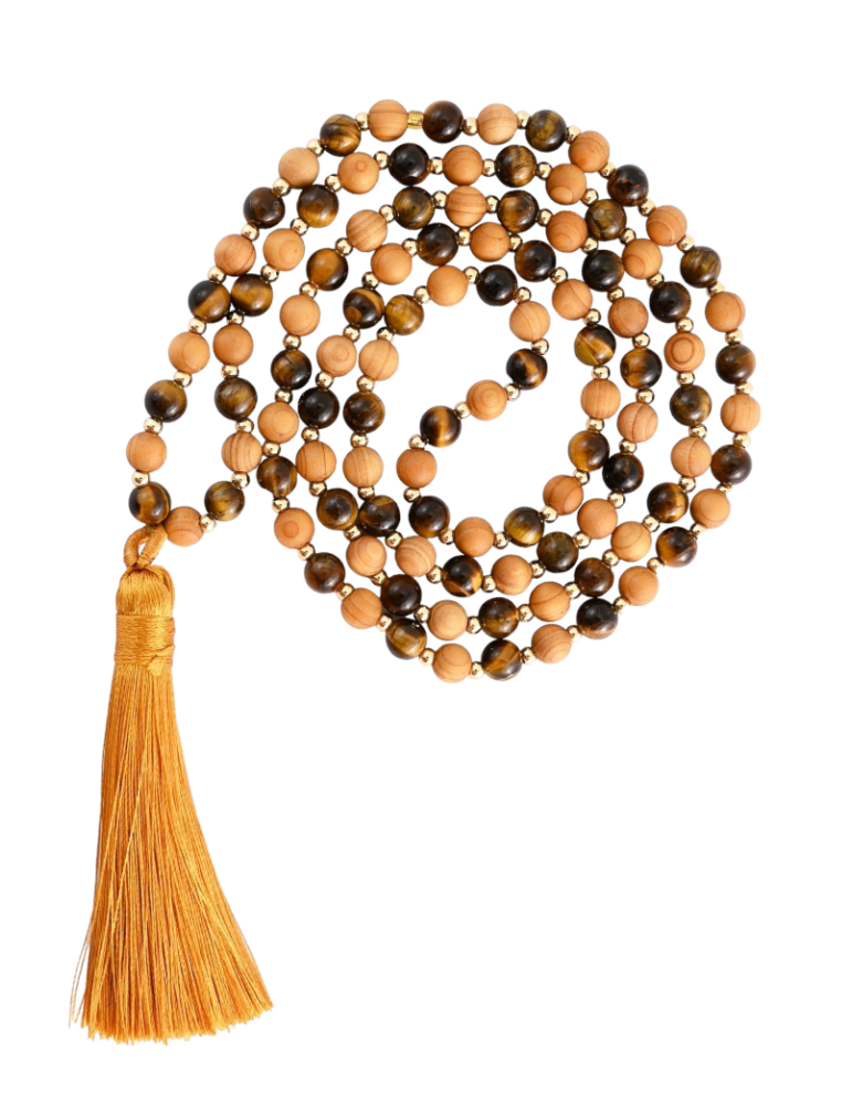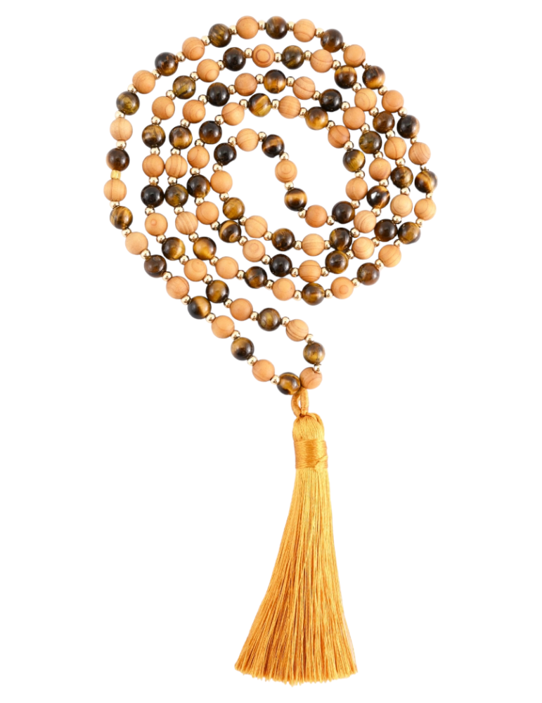 Œil de tigre + bois - Collier mala