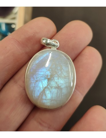 Pendentif Labradorite blanche serti en argent 925