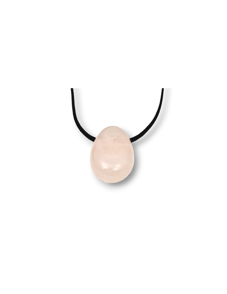 Pendentifs en Quartz rose percés en travers pour le passage d'un cordon.