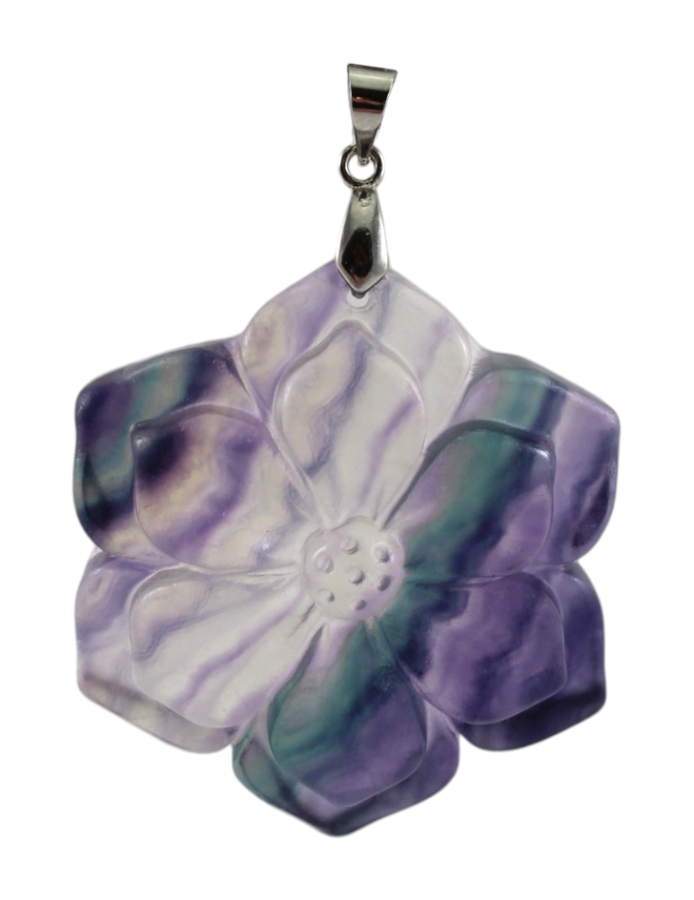 Pendentif sculpté en fluorite mix couleurs - Qualité AA