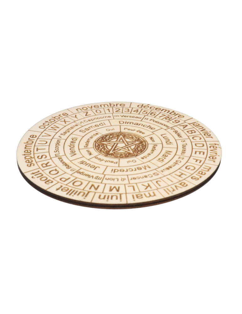 Disque en bois gravé de radiesthésie
