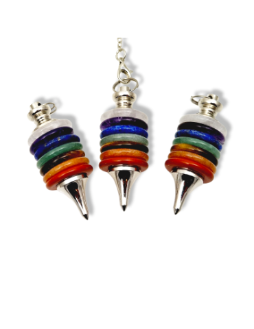 7 chakra rings pendulum. Metal chain carabiner attachment.