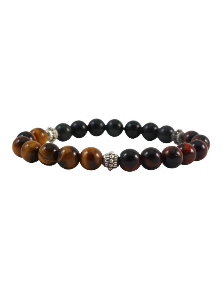 Triple protection bracelet made of natural tiger's eye, bull's eye, and hawk's eye.
