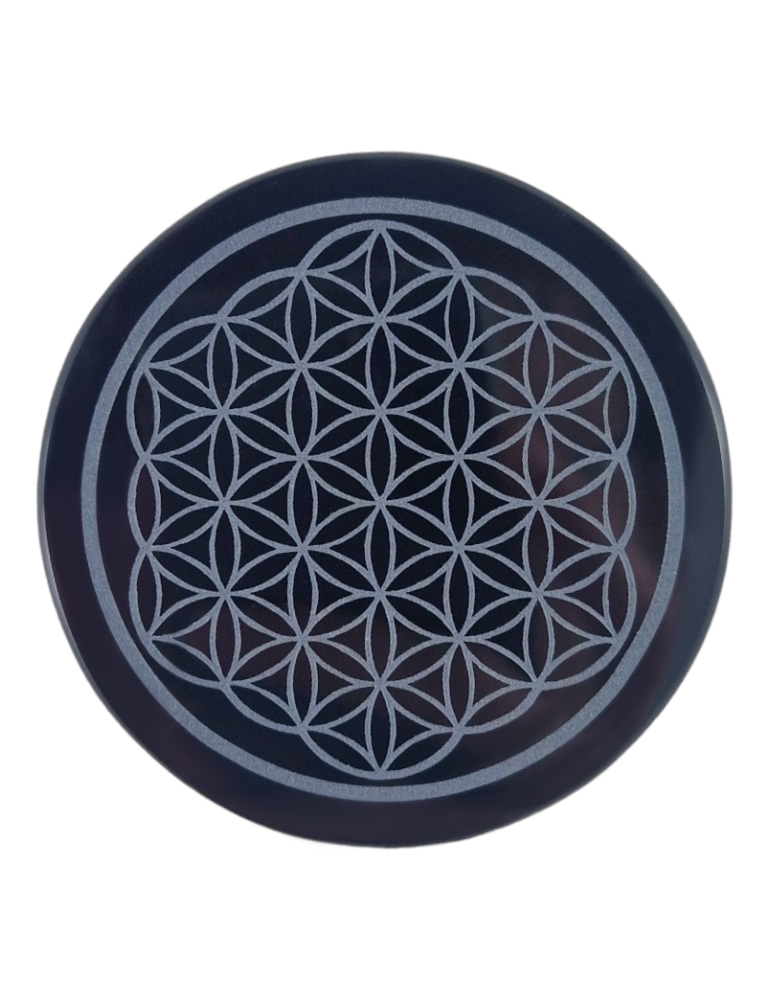 Life flower disc to be placed in black obsidian to recharge stones or emit good waves.