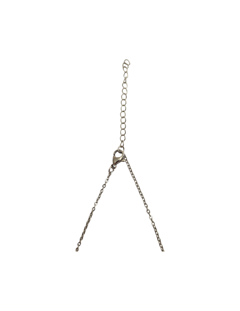 Rock Crystal triangle pendant in stainless steel, with a 48cm steel chain