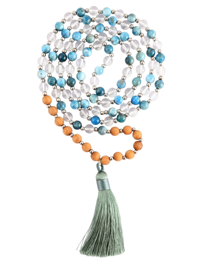 Mala in Apatite, rock crystal and wood - Quality A