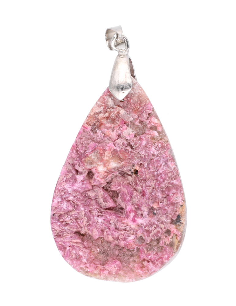 Druzy cobaltocalcite pendant (layer of micro-crystals on the front face). Metal bail.