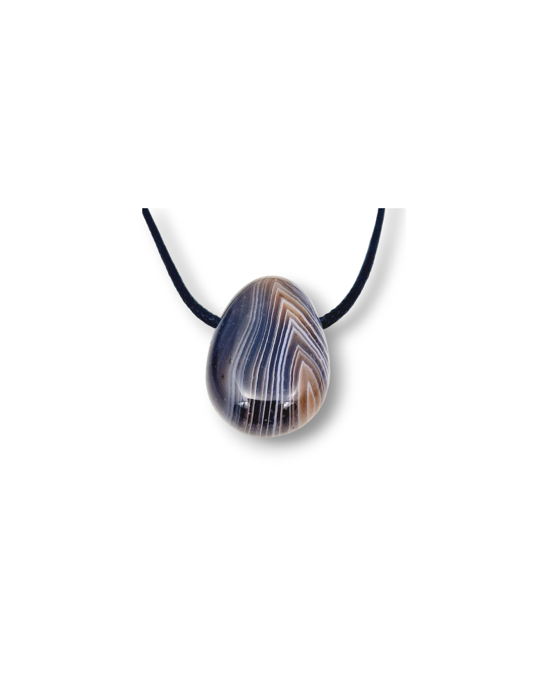 Botswana Agate pendants drilled sideways for the passage of a cord.