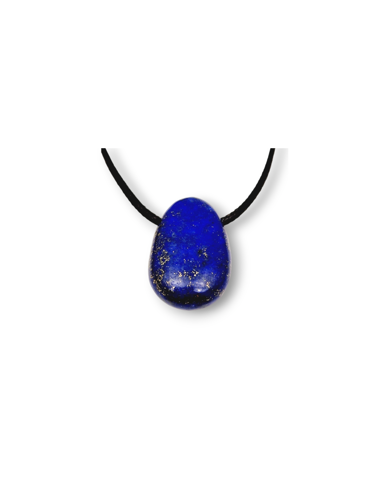 Pendants in Lapis Lazuli drilled across for the passage of a cord.
