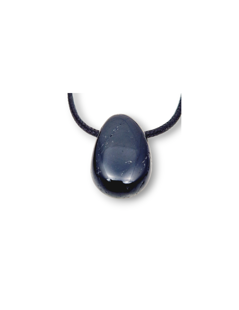 Black Tourmaline pendants pierced sideways for the passage of a cord.