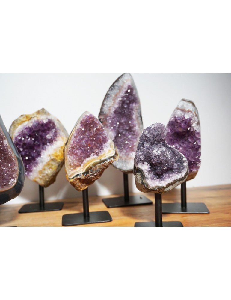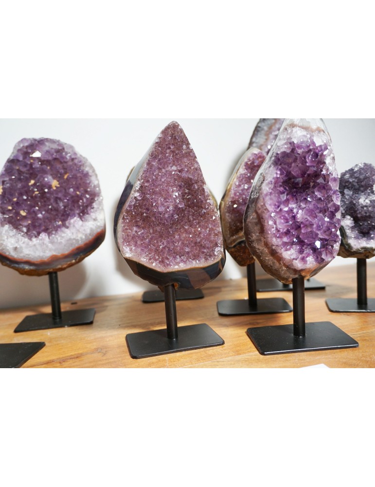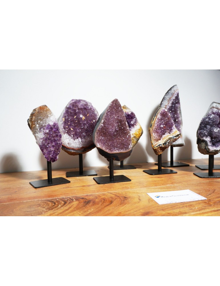Ametista su miscela di base lucida di Uruguay e Brasile con bellissimi cristalli colorati.