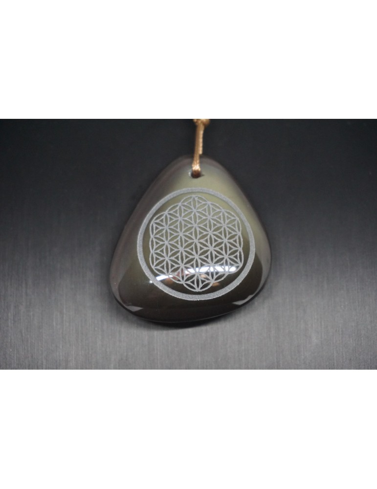 Pendente in ossidiana inciso con il simbolo del fiore della vita.