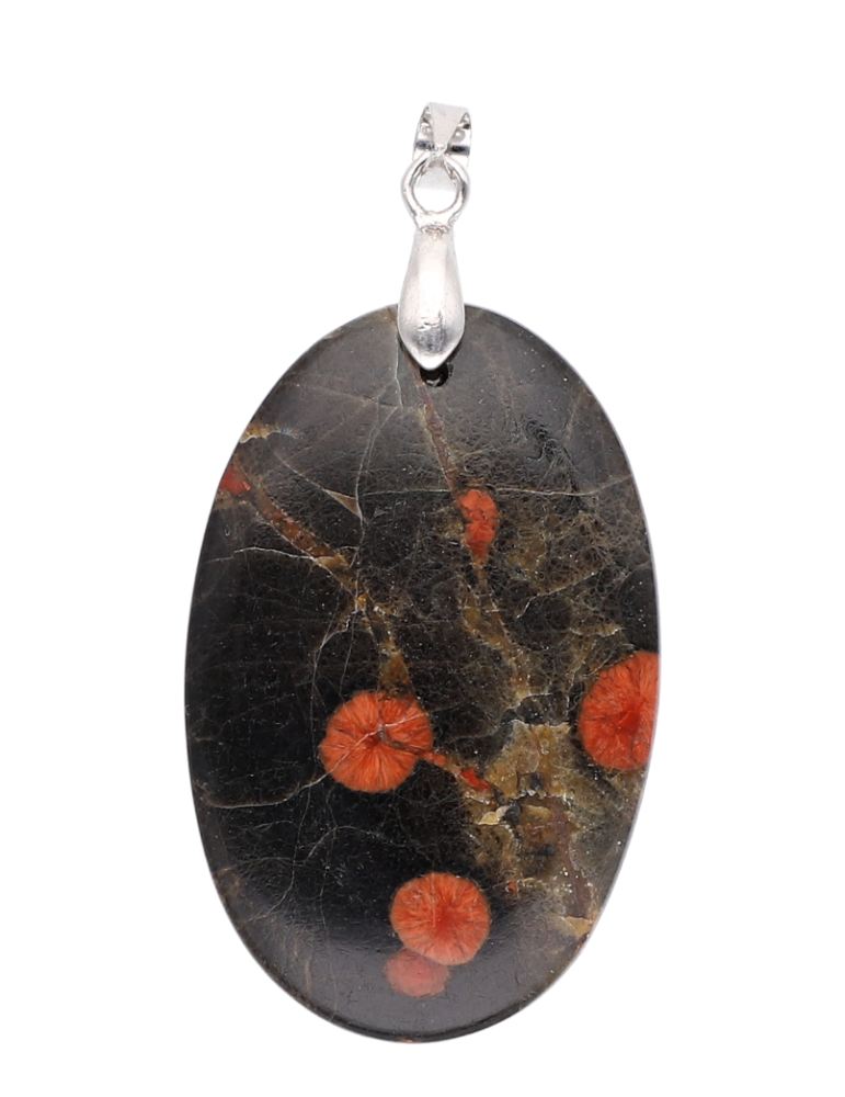 Ossidiana peanut - Pendente a cabochon con anello in metallo.