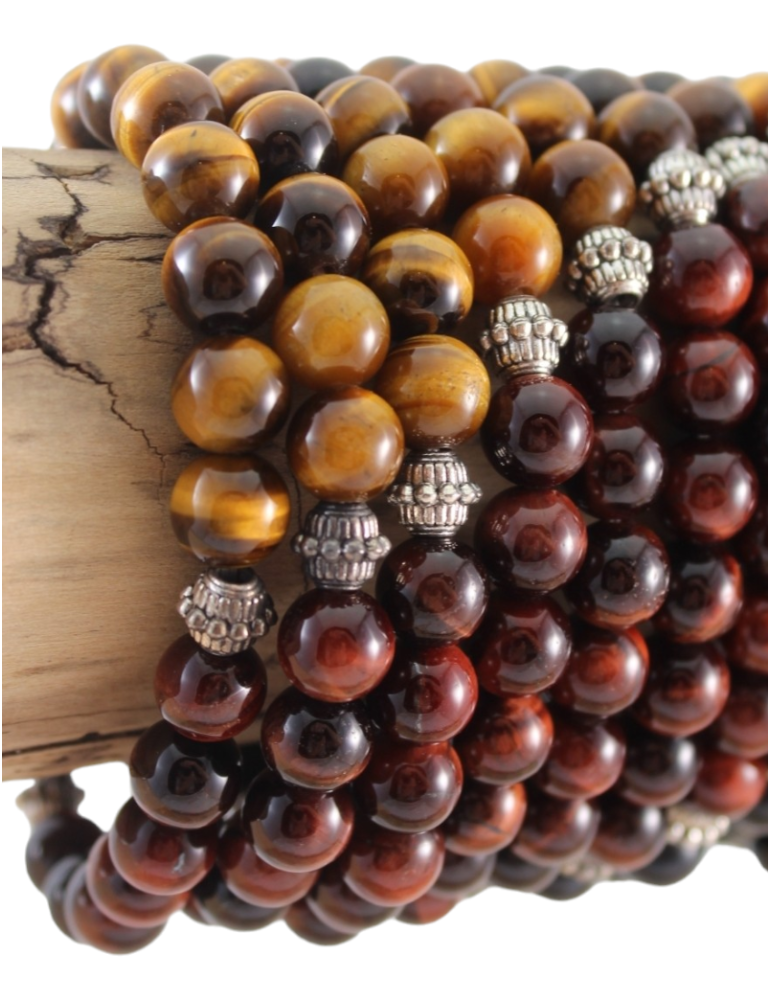 Drievoudige beschermingsarmband bestaande uit tijgeroog, stierenoog en natuurlijke haviksoog.