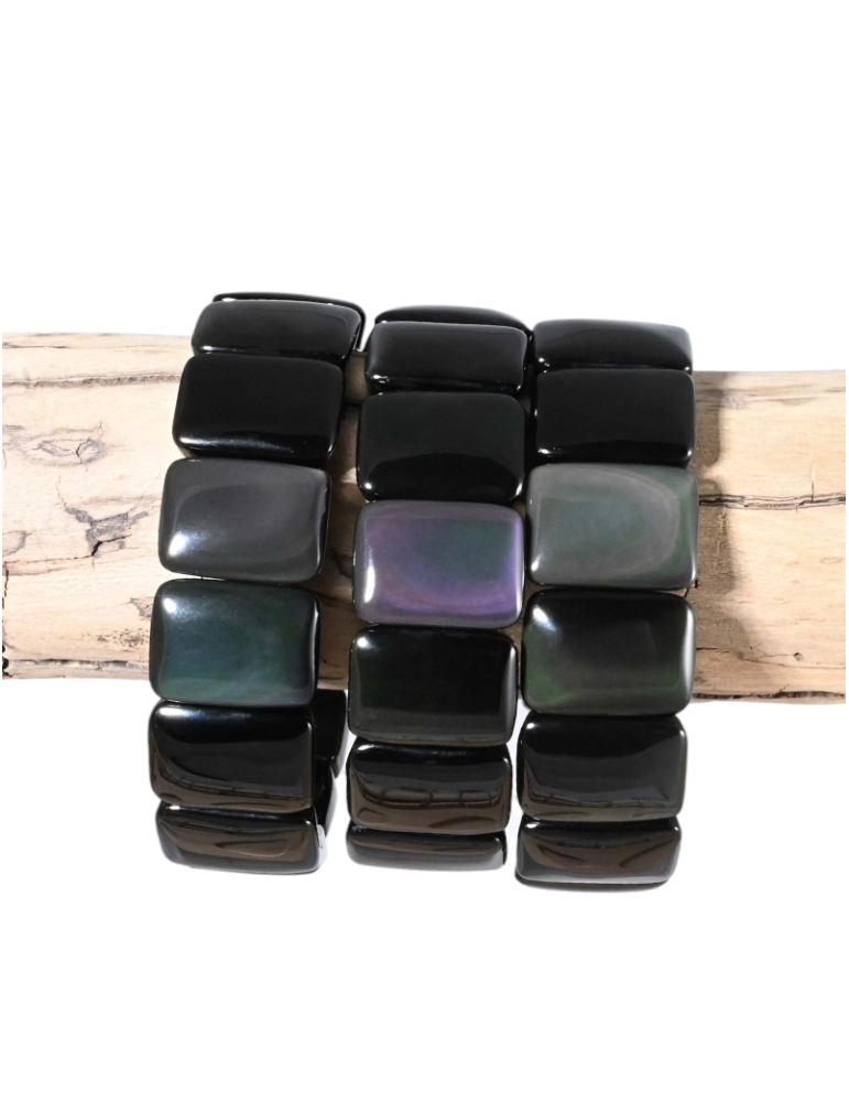 Hemelogenobsidiaan - Armband van platte kralen, rechthoeken