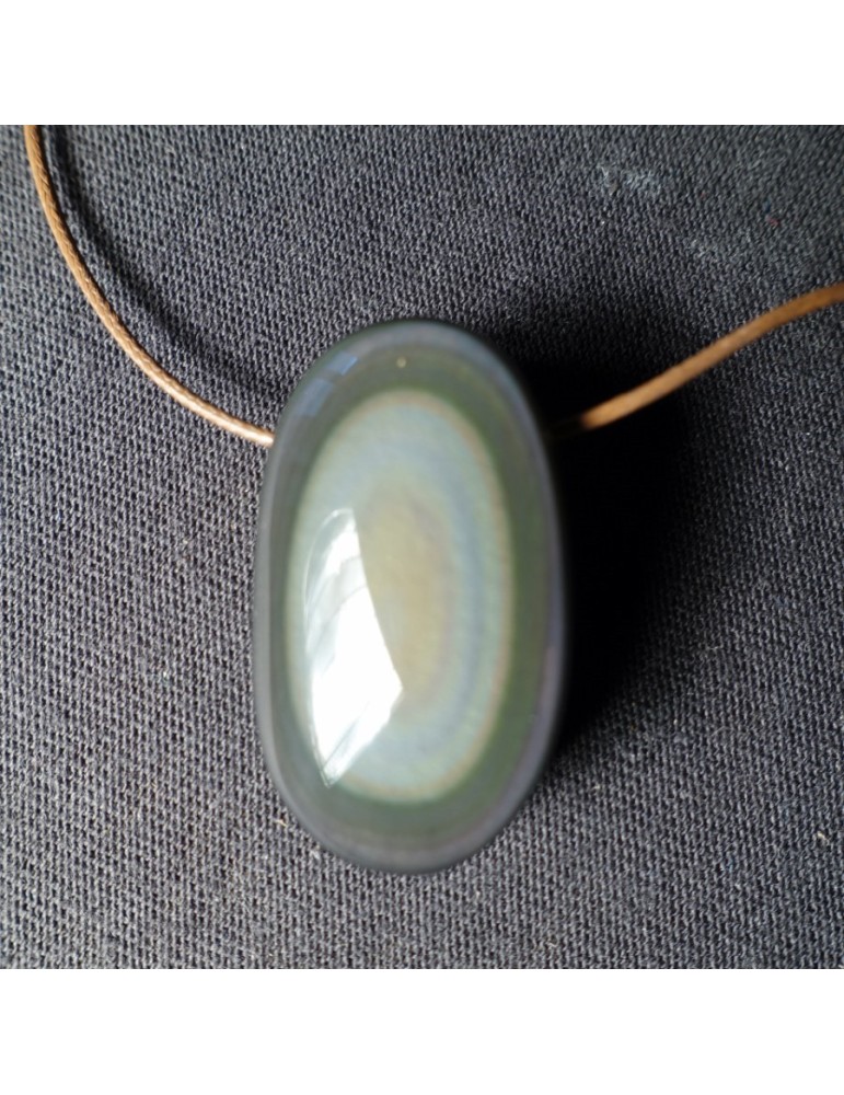 Hanger van obsidiaan met hemelse oog, dwars doorboord, zeer mooie kwaliteit.