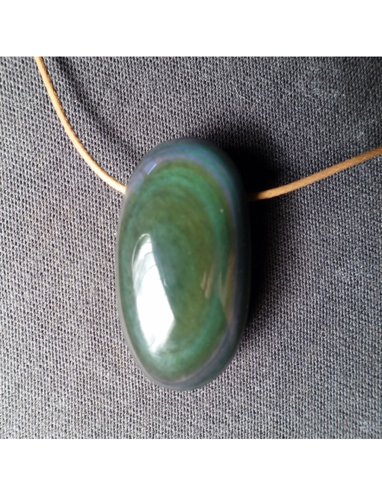 Hanger van obsidiaan manta huichol, dwars doorboord, zeer mooie kwaliteit.
