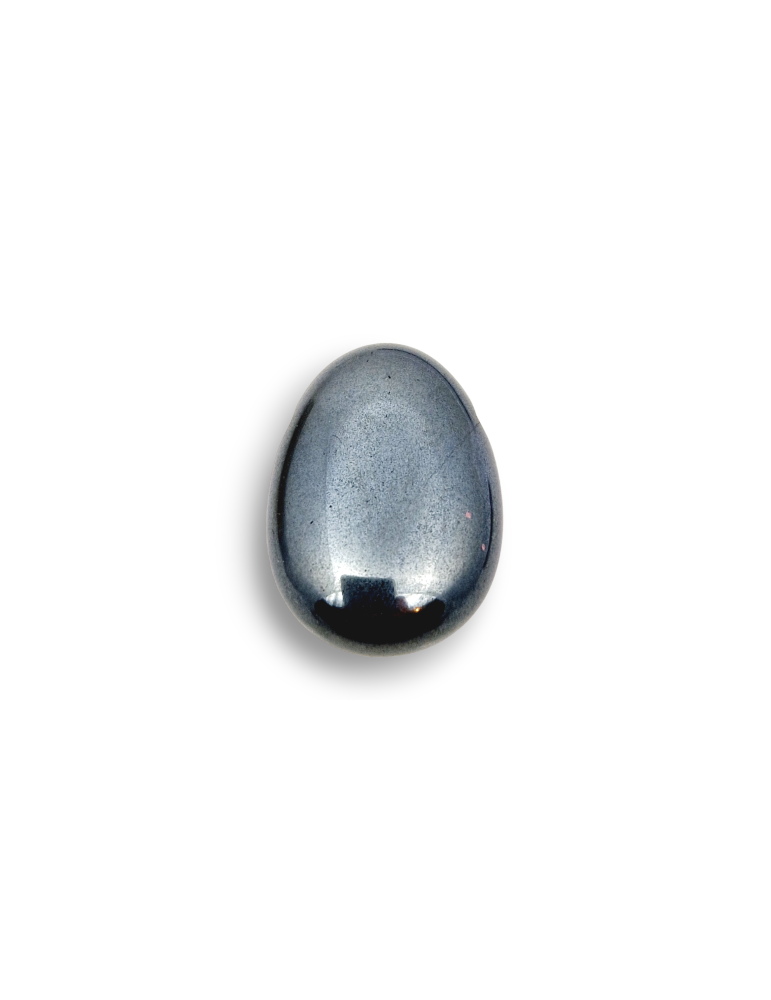 Hanger van hematiet met een gat voor het doorvoeren van een koord.