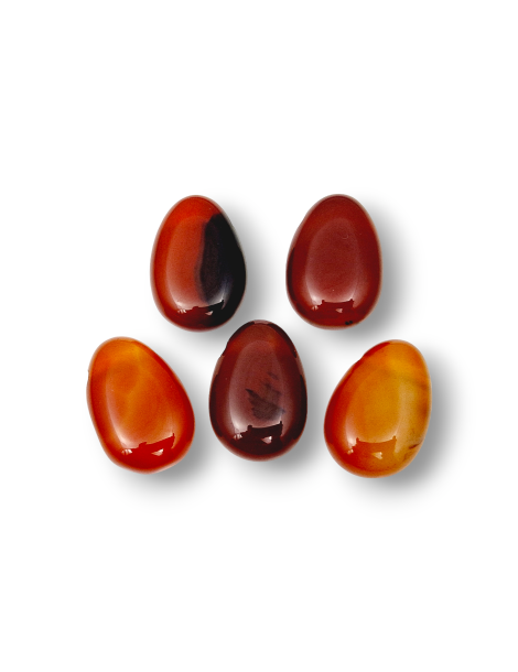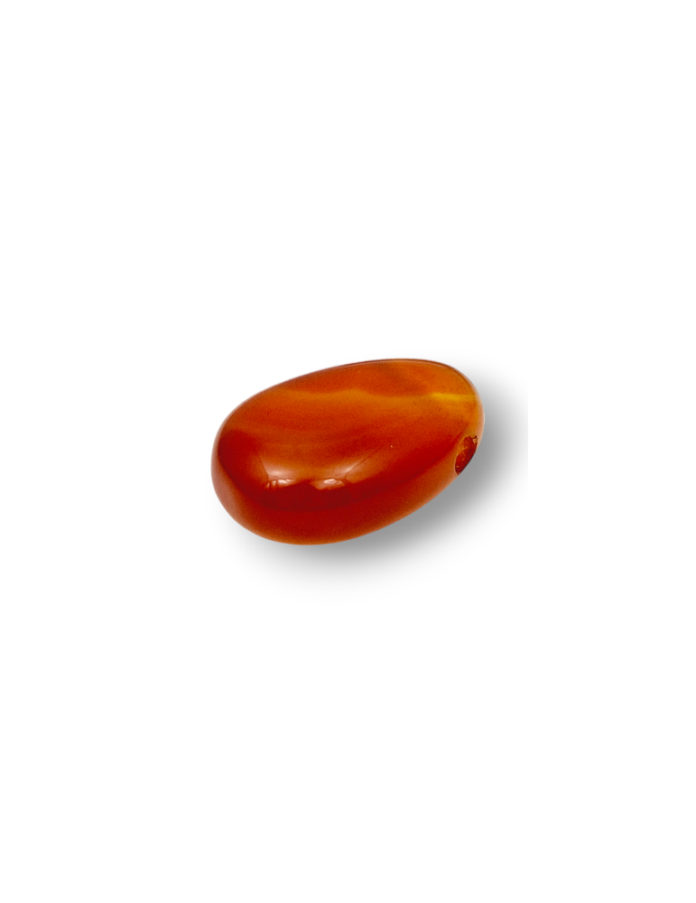Hangers van carneool, dwars doorboord voor het doorvoeren van een koord.