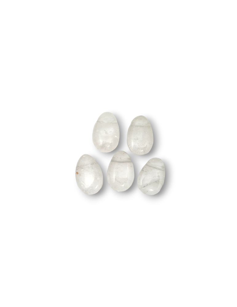 Hangers van bergkristal, doorboord voor het doorvoeren van een koord.