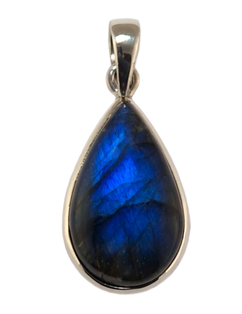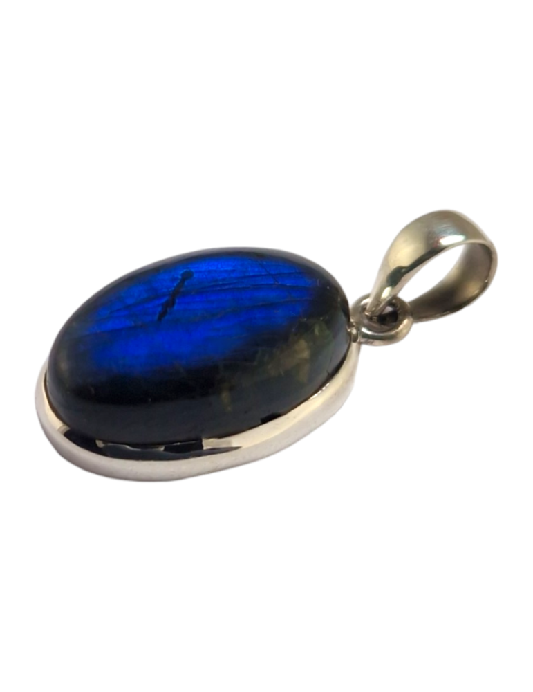 Blauwe Labradoriet hanger gezet in 925 zilver