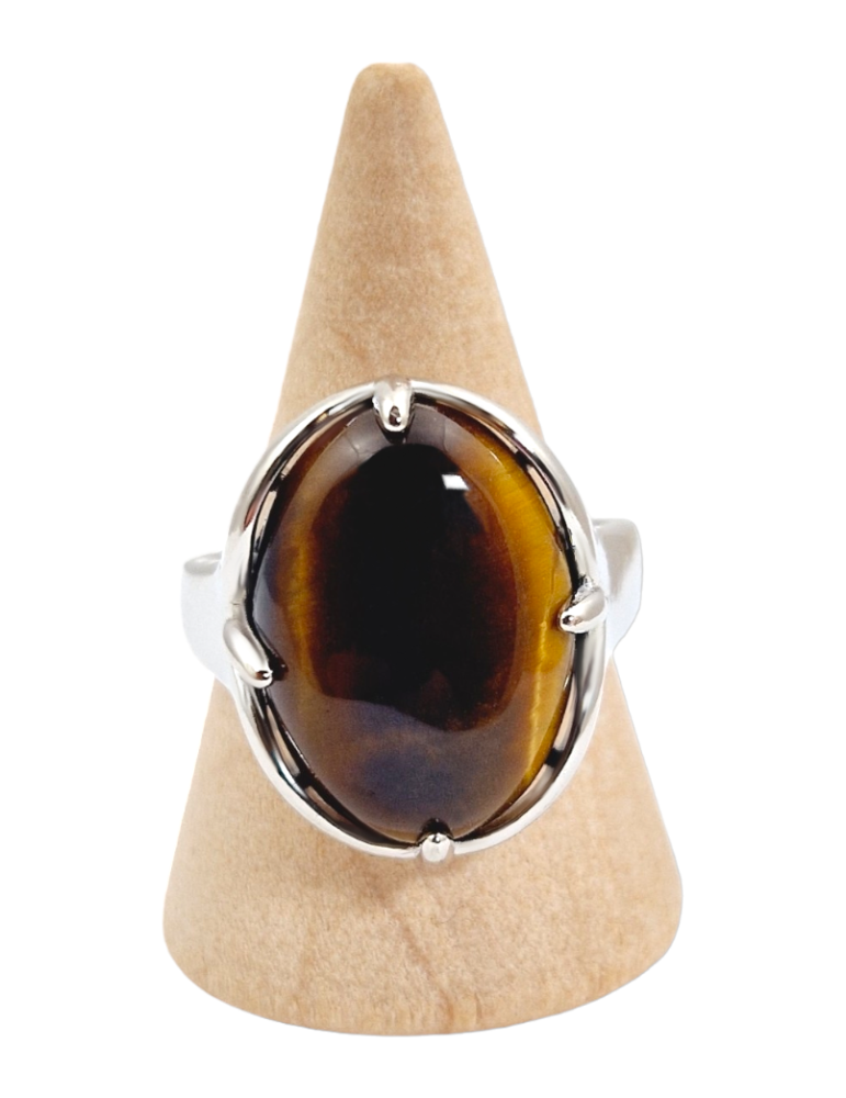 Ovale ring in Aventurijn, Tijgeroog, Howliet, Amethist, Carneool en Rozenkwarts