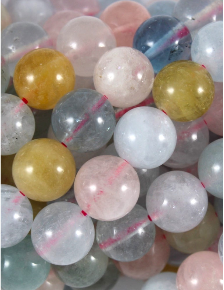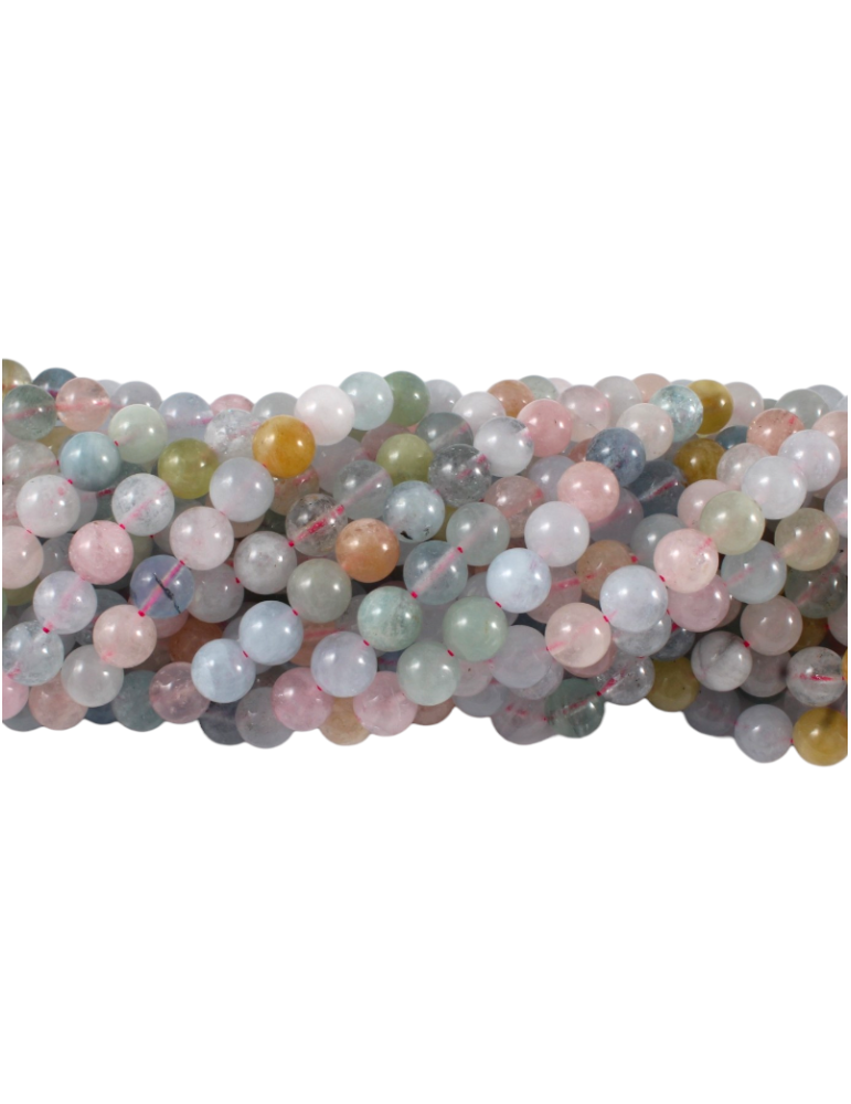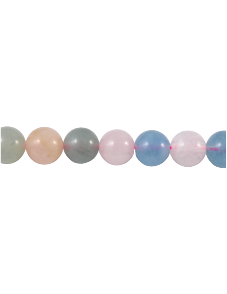 Mistura de Berilo água-marinha, morganita e heliodoro - Fio de pérolas redondas