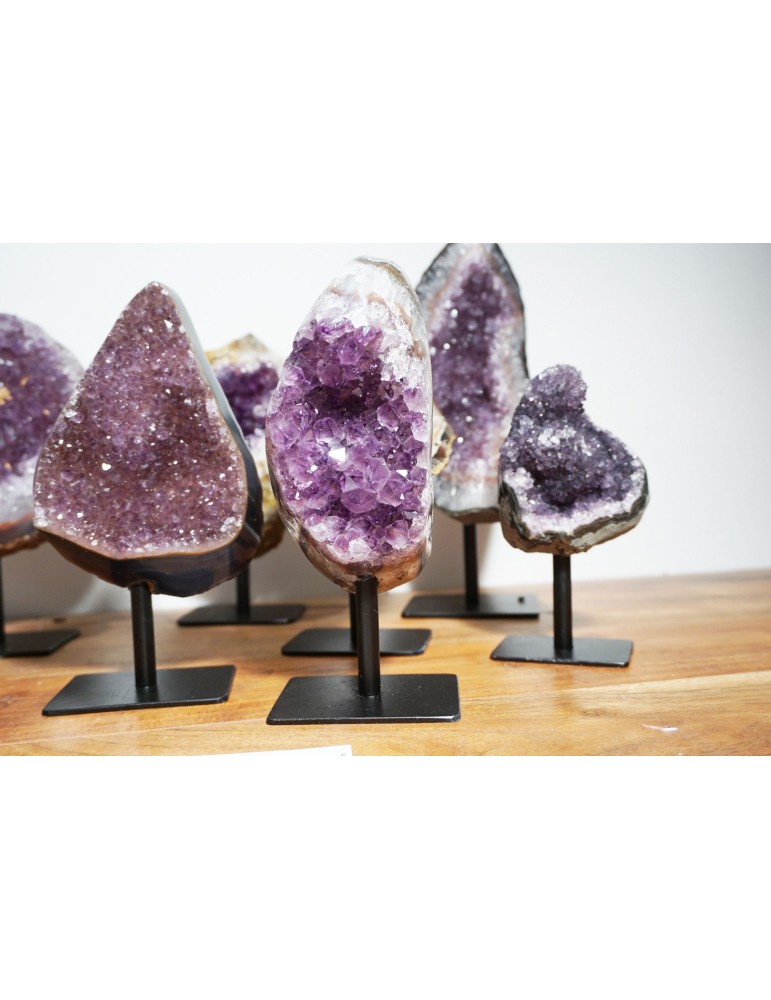 Ametista em base polida, mistura do Uruguai e do Brasil, com belos cristais bem coloridos.